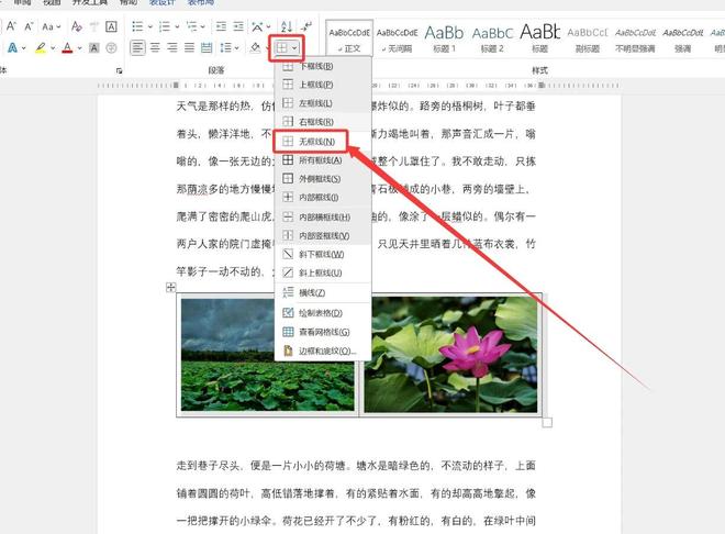 最后我们再次全选表格,打开边框下拉菜单,选择无边框,表格的边框线就直接消失了。