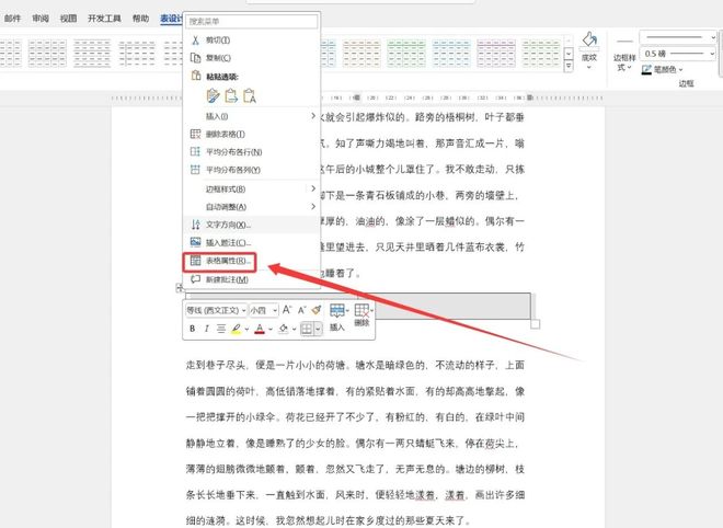 这个时候文章中就会出现两个并排的单元格,我们点击表格的左上角全选,然后右键选择表格属性。