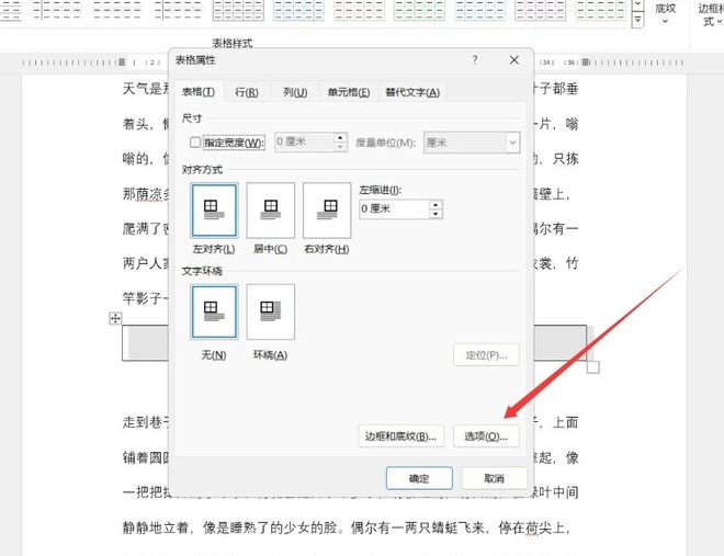 在弹出的表格属性界面中点击选项按钮。