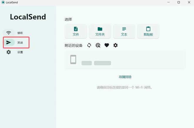 这里我就以windows端传输文件到安卓端为例。在电脑上打开软件,点击发送。