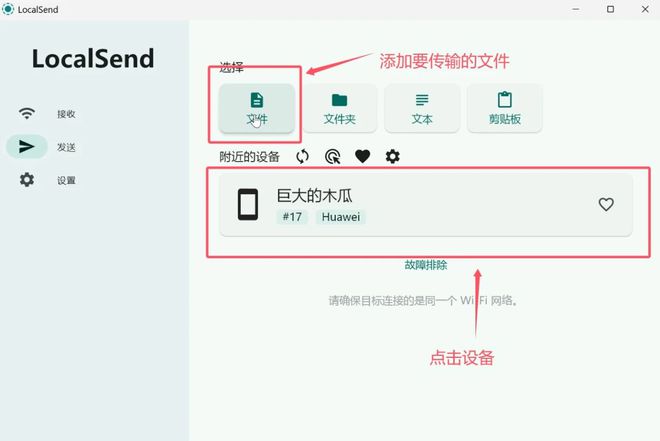 接着我们点击文件,选择需要传输的文件,最后再点击这台安卓设备。