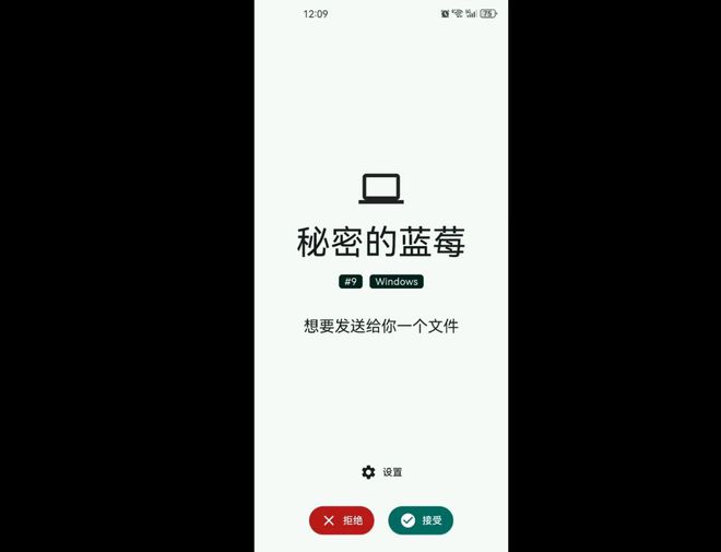 此时安卓设备上会提示是否接收,点击接收即可实现文件传输了。