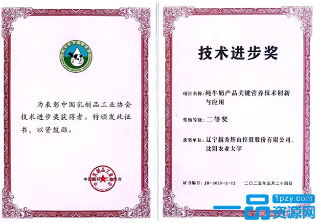 越秀集团旗下越秀乳业荣获“技术进步奖”,引领纯牛奶产品升级与变革在推动中国乳业高质量发展的道路上,科技创新始终是越秀乳业的核心驱动力。5月24日,中国乳制品工业协会第三十一次年会暨2025中国乳业技术博览会于江苏南京正式启幕,为乳品行业搭建起产学研深度融合的交流平台。会上,越秀乳业旗下越秀辉山与沈阳农业大学的联合项目“纯牛奶产品关键营养技术创新与应用”获评2025年度中国乳制品工业协会科学技术奖——技术进步奖二等奖。该项目聚焦食品科学与技术领域的突破,旨在通过科技创新的力量,引领纯牛奶产品升级与变革,为推动中国乳制品行业高质量发展注入创新动能。