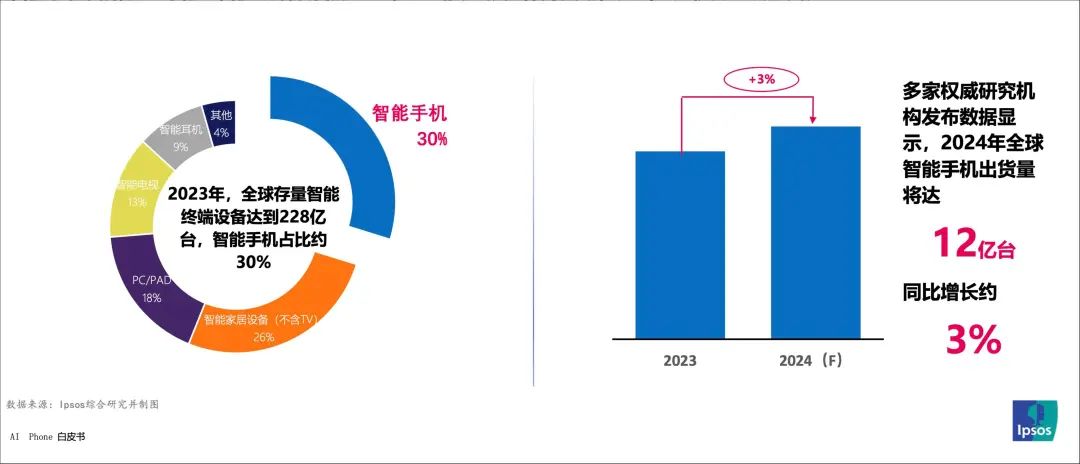 根据益普索最新发布《AI Phone白皮书》显示,预计2030年人类将进入YottaByte数据时代,各类终端设备接入数量以万兆计,智能终端呈井喷式增长。其中,智能手机在AI(人工智能)的范式革命催化作用下,借助高渗透率、高频率使用、高流量入口等属性,将实现全场景泛在和设备连接与控制。